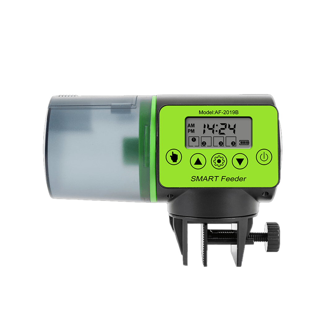 Компактная автокормушка SMART Feeder AF-2019B позаботится о том, чтобы рыбки и другие обитатели аквариума были сыты и здоровы. Устройство можно настроить таким образом, чтобы оно в определенное время высыпало установленное количество корма. Можно запрограммировать до четырех кормлений в день. Информация о настройках выводится на экран. Компактный прибор занимает минимум места. Он устанавливается на стенку аквариума и поворачивается перед тем, как высыпать корм. Для работы необходимо высыпать корм в емкость и позаботиться о достаточном уровне заряда батарей – 2 пальчиковых аккумулятора необходимо приобретать отдельно. Автокормушка – находка для тех, кто любит рыб, но из-за своей занятости не может педантично выполнять рекомендации по уходу за ними.